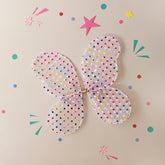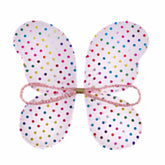 Sprinkle some fairy dust and watch their imaginations take flight! Made from soft tulle and adorned rainbow foil spots, each set of wings has satin covered elastic straps making them comfy and easy to wear. The perfect accessory for little dreamers and rainbow chasers!